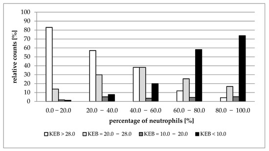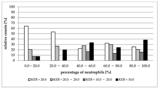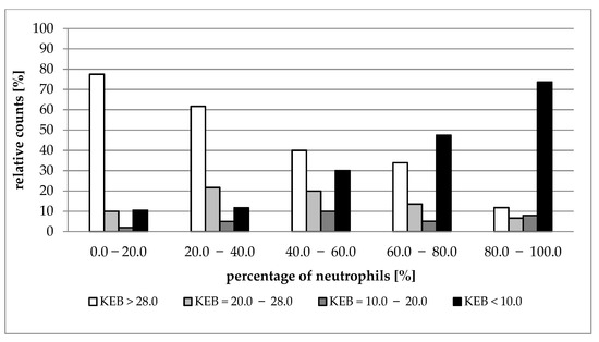| Median (1st–3rd IQR) Neutrophils (%) | 0.0–20.0 | 20.0–40.0 | 40.0–60.0 | 60.0–80.0 | 80.0–100.0 |