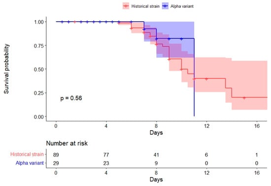 | Total N = 118 n (%) | Historical Strain N = 89 n (%) | Alpha Variant N = 29 n (%) | p-Value | |
