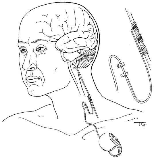 - Rush, A.J.; George, M.S.; Sackeim, H.A.; Marangell, L.B.; Husain, M.M.; Giller, C.; Nahas, Z.; Haines, S.; Simpson, R.K.; Goodman, R. Vagus nerve stimulation (VNS) for treatment-resistant depressions: A multicenter study, Biol. Psychiatry 2000, 47, 273–275. [Google Scholar] [CrossRef]