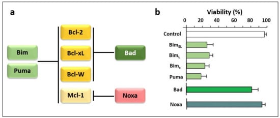 - Glab, J.A.; Mbogo, G.W.; Puthalakath, H. BH3-Only Proteins in Health and Disease. In International Review of Cell and Molecular Biology; Elsevier: Oxford, UK, 2017; Volume 328, pp. 163–196. [Google Scholar]