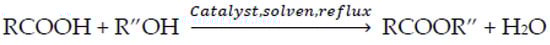 Esterification of alcohol with montmorillonite catalyst. R = alkyl or aryl or substituted aryl; R” = primary or secondary alcohol.