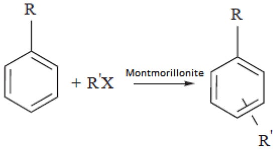 Montmorillonite-supported transition-metal salts (zinc and nickel chlorides) catalysis of Friedel–Crafts alkylation.