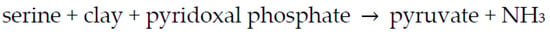 - Mortland, M.M. Deamination of glutamic acid by pyridoxal phosphate-Cu2+-smectite catalysts. J. Mol. Catal. 1984, 27, 143–155. [Google Scholar] [CrossRef]