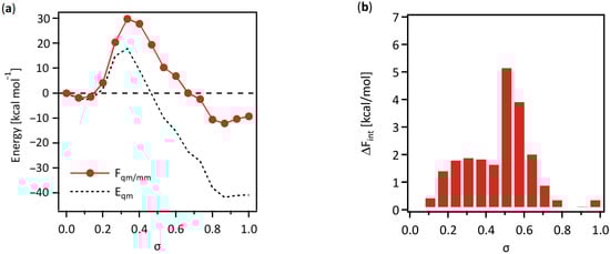 (a) Change in the free-energy along the MEP relative to that in the QM energy. (b) Change in the corresponding QM/MM free-energy contribution.