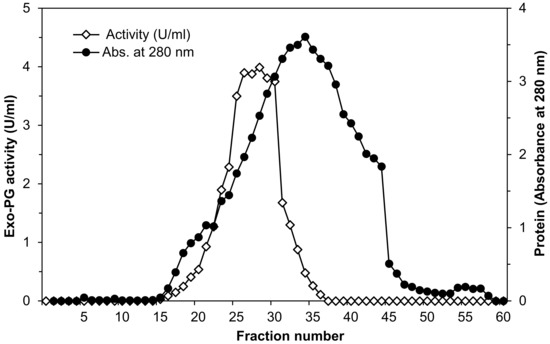 3.2. Characterization of Partially Purified Exo-Polygalacturonase