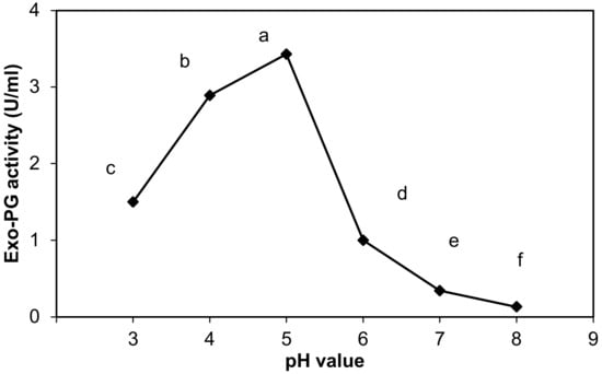 3.2.2. Effect of pH on the Exo-Polygalacturonase Activity