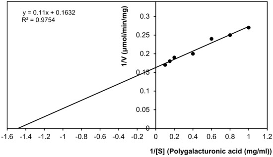 4.2.5. Kinetic Constants of Exo-Polygalacturonase Activity