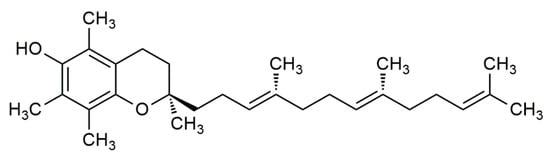 In 1922, vitamin E was identified by Evans and Bishop as an organic lipid-soluble compound capable of restoring reproduction in diet-restricted sterile rodents. These rodents were fed foods rich in vitamin E, which was then noted as ‘substance X’, and due to its biological effects, it earned the name “tocopherol”, meaning “to bring offspring” in Greek [3]. Thereafter, the term vitamin E was adapted to represent tocochromanols in plant lipids, which are composed of a hydroxylated chromanol ring attached to a hydrophobic phytyl side chain. Tocochromanols include both tocopherols and tocotrienols (Figure 1 and Figure 2), which differ in the saturation of their phytyl side chains. The former has a saturated phytyl (isoprenoid) side chain, while the latter has an unsaturated phytyl side chain with 3 double bonds. Both tocopherol and tocotrienol have four vitamers each, and are noted as α, β, γ or δ, such that they can be distinguished based on the extent and position of methyl groups on the chromanol ring. Despite the existence of multiple tocopherol and tocotrienol vitamers, where some have been found to show biological activities, the attribute of ‘vitamin’ is only given to α-tocopherol (αT) due to its selective uptake [4] and poor recognition of other vitamers in the liver by the α-tocopherol transfer protein (α-TTP) [5]. This was further supported by the fact that only α-tocopherol (with RRR stereochemistry) could prevent diseases linked with vitamin E deficiency. Hence, other vitamers of tocopherol and tocotrienol are not considered as ‘vitamin E’ in nutritional studies [2], but rather are noted as its analogues or derivatives.