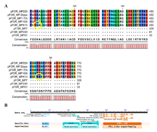 The analysis of the foraging coded peptide evidenced the presence of missense mutations in clones 1GK (Figure 4) and K10 (Figure 5), but they did not change the structure of both functional domains and active sites suggesting that these mutations did not alter the functionality of the coded protein.