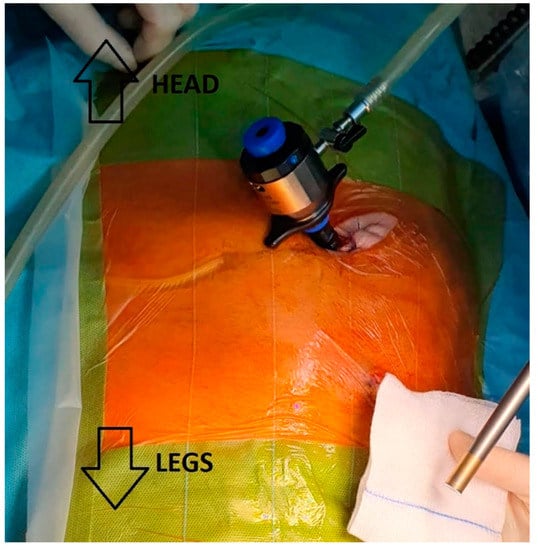 The technical aspect, which could have critical potential to prevent further progress of the operation with extraperitoneal access, was the location of the intraperitoneal portion of the catheter. In the case of a typical end position in the middle hypogastrium, access into the true pelvis, without collision with the catheter, may not be possible. To avoid this obstacle, it was necessary to determine the catheter route at the stage of surgery planning. Cooperation with the surgeon who performed the tube insertion was necessary.