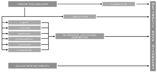 Olczyk, M.; Czkwianianc, E.; Socha-Banasiak, A. Metabolic Bone Disorders in Children with Inflammatory Bowel Diseases. Life 2022, 12, 423. https://doi.org/10.3390/life12030423