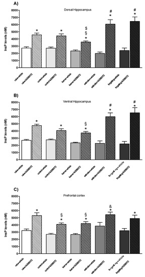 The following supporting information can be downloaded at: https://www.mdpi.com/article/10.3390/life12030463/s1, Figure S1: Uncropped images of blots in prefrontal cortex, dorsal and ventral hippocampus, Table S1: Individual data points of western blot densitometric analysis.