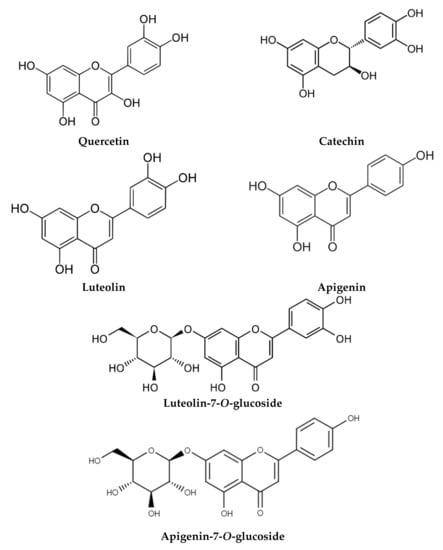 - de Franco, E.P.D.; Contesini, F.J.; Lima da Silva, B.; Alves de Piloto Fernandes, A.M.; Wielewski Leme, C.; Gonçalves Cirino, J.P.; Bueno Campos, P.R.; de Oliveira Carvalho, P. Enzyme-assisted modification of flavonoids from Matricaria chamomilla: Antioxidant activity and inhibitory effect on digestive enzymes. J. Enzym. Inhib. Med. Chem. 2020, 35, 42–49. [Google Scholar] [CrossRef]