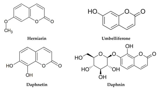 Structure of coumarins compounds identified in Matricaria chamomilla.