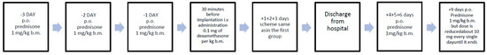 Study design for second group, which was treated with combined oral and intravenous (i.v.) steroid therapy (prolonged therapy). p.o.—per os; i.v.—intravenous; b.m.—body mass.