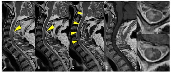 - Sarbu, N.; Lolli, V.; Smirniotopoulos, J.G. Magnetic resonance imaging in myelopathy: A pictorial review. Clin. Imaging 2019, 57, 56–68. [Google Scholar] [CrossRef] [PubMed]