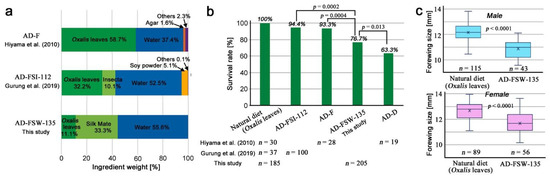 3.1. Performance of the Artificial Diet AD-FSW-135
