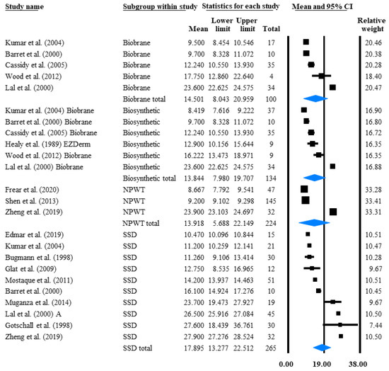 | NPWT + Acticoat + Mepitel II | Frear et al. (2020) [45] | 47 | 2.43 | 0.86 |