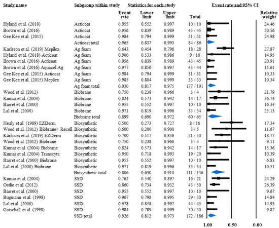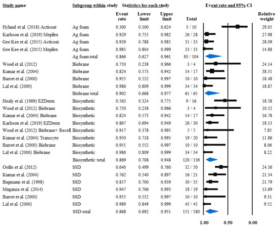 | Biobrane + Acticoat II | Hyland et al. (2018) [49] | 10 | 6 | 60 |