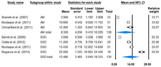 | SSD | Muganza et al. (2014) [26] | 19 | 10.7 | 3.8 |
