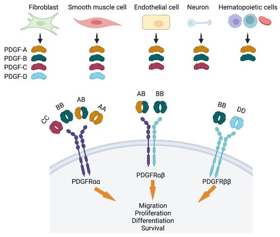 - Kazlauskas, A. PDGFs and Their Receptors. Gene 2017, 614, 1–7. [Google Scholar] [CrossRef] [PubMed]