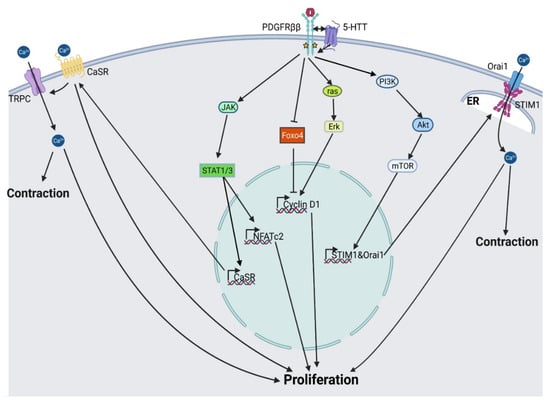 - Ogawa, A.; Firth, A.L.; Smith, K.A.; Maliakal, M.V.; Yuan, J.X.-J. PDGF Enhances Store-Operated Ca2+ Entry by Upregulating STIM1/Orai1 via Activation of Akt/MTOR in Human Pulmonary Arterial Smooth Muscle Cells. Am. J. Physiol. Cell Physiol. 2012, 302, C405–C411. [Google Scholar] [CrossRef] [PubMed] [Green Version]