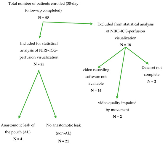 APA StyleLobbes, L. A., Berns, S., Warschkow, R., Schmidt, L. R., Schineis, C., Strobel, R. M., Lauscher, J. C., Beyer, K., & Weixler, B. (2022). Perfusion Visualization during Ileal J-Pouch Formation—A Proposal for the Standardization of Intraoperative Imaging with Indocyanine Green Near-Infrared Fluorescence and a Postoperative Follow-Up in IBD Surgery. Life, 12(5), 668. https://doi.org/10.3390/life12050668