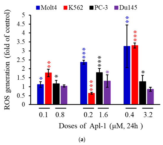 3.3. Apl-1 Induced NOX-Mediated ROS in Prostate and Leukemia Cancer Cells