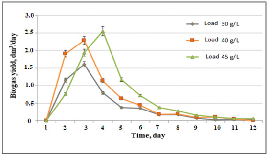 The next step included estimation of the impact of loading on biogas production (Figure 4).