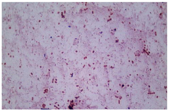 Another important feature of the high temperature conditions was keeping away pathogens. Operation under thermophilic conditions also reduces the need for external sanitation. High temperature conditions can positively affect the pathogen elimination in the resultant digestate [44]. Figure 10 reveals a light microscopy image, obtained from our thermophilic methanogenic digester operating at 55 °C, where short rod-shaped and coccoid forms were observed. The participating microbial community had a complex structure and probably used synergetic mechanisms in the performance of anaerobic biodegradation of the strong and complex substrate, as native wheat straw was converted to energy production.