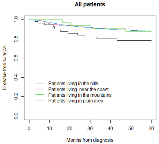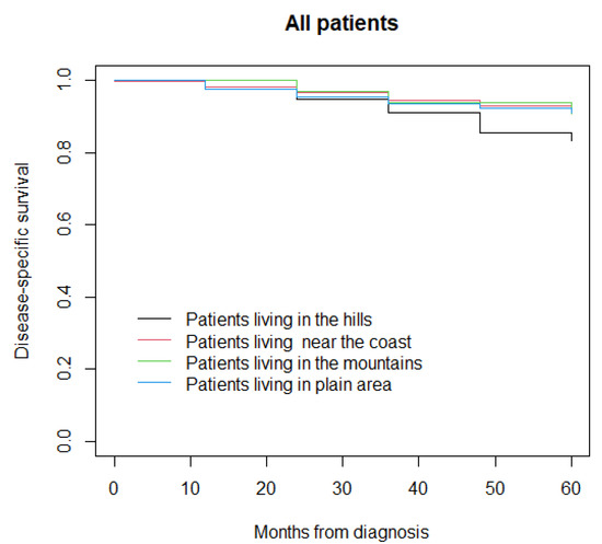 | Hills (n = 56) | Coast (n = 262) | Mountains (n = 34) | Plain Area (n = 766) | p-Value | |
