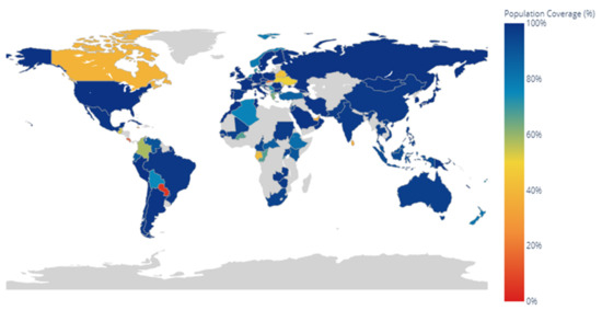 The Vaxign 2.0 analysis included a world map with the percentage of predicted protection for each country based on the reference HLAs, the epitopes of the modeling protein that can bind to the MHC-I or II of T cells, and the information available in the IEDB database, showing most of the regions with 100% predicted protection (Figure 5).