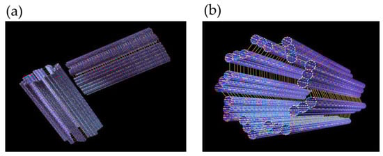 The VMD molecular graphics software package is used for both the execution of Adaptive Poisson–Boltzmann Solver (APBS) [35] and the visualization of the resulting electrostatic potentials. AMBER force field [36] parameters such as atomic charges and radii are assigned using PDB2PQR webserver (http://server.poissonboltzmann.org, accessed on 29 May 2021) [37].