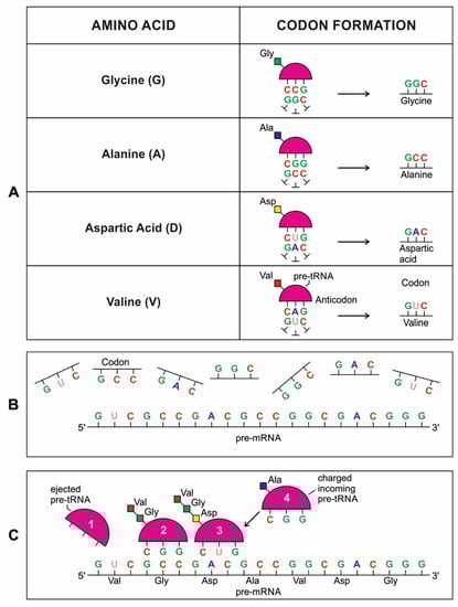 - Mace, K.; Gillet, R. Origins of mRNA: The missing link in the birth of protein synthesis? Nucleic Acids Res. 2016, 17, 8041–8051. [Google Scholar] [CrossRef] [Green Version]