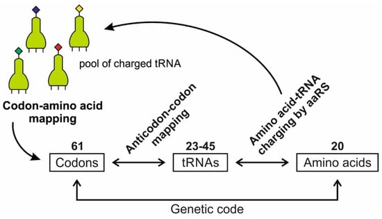 - De Duve, C. Transfer RNAs: The second genetic code. Nature 1988, 333, 117–118. [Google Scholar] [CrossRef] [PubMed]