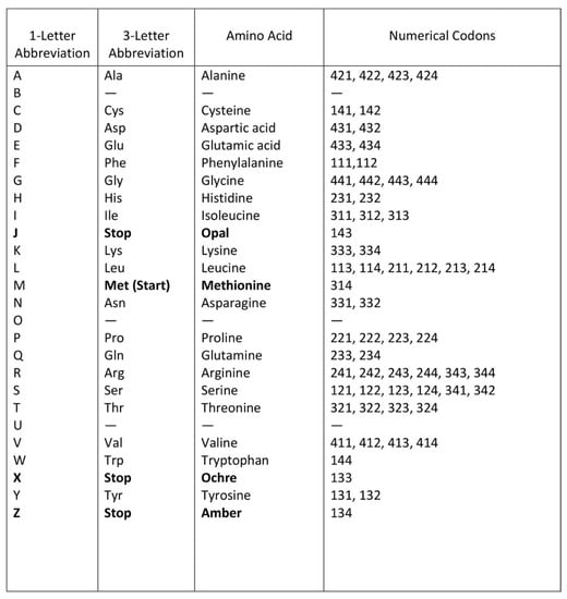 - Wong, J.T.F. Coevolution of genetic code and amino acid biosynthesis. Trends Biochem. Sci. 1981, 6, 33–36. [Google Scholar] [CrossRef]