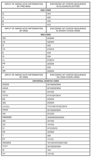 Please follow these steps to visualize the encoding process of 10 codons (4 + 6) with six new codons by charged tRNA molecules in the SNS code: