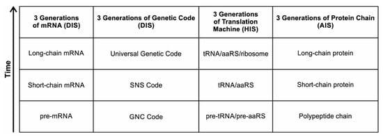- Ikehara, K. Origins of gene, genetic code, protein and life: Comparative view of life systems from a GNC-SNS primitive code hypothesis. J. Biosci. 2002, 27, 165–186. [Google Scholar] [CrossRef] [PubMed]