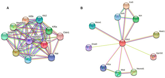 - Szklarczyk, D.; Gable, A.L.; Nastou, K.C.; Lyon, D.; Kirsch, R.; Pyysalo, S.; Doncheva, N.T.; Legeay, M.; Fang, T.; Bork, P.; et al. The STRING database in 2021: Customizable protein–protein networks, and functional characterization of user-uploaded gene/measurement sets. Nucleic Acids Res. 2021, 49, D605–D612. [Google Scholar] [CrossRef] [PubMed]