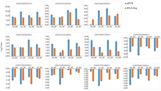 We selected 11 DEGs from the transcriptome data for qRT-PCR analysis in order to verify the accuracy of RNA-seq data. The results showed that the qRT-PCR data were consistent with the expression trend of the RNA-Seq data, implying that the RNA-Seq data obtained by Illumina sequencing have high reliability (Figure 9). The inconsistencies between the data sets may be explained by differences between the two methods.