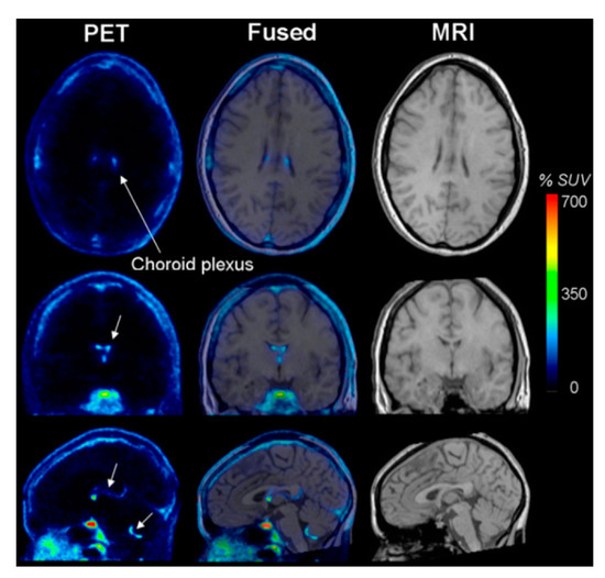 PET Image. Brain image taken using positron emission tomography (PET) and T1 MRI images. Red regions of the image show areas of tracer accumulation. The fused image is the PET image superimposed on the structural MRI image. http:/doi:10.2967/jnumed.108.058453, accessed on 24 April 2022.