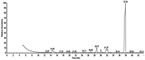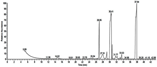 GC-MS analysis chromatogram of metabolized medium extract of A. alternata.