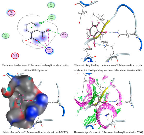 N-(4,6-dimethyl-2-pyrimidinyl)-4-(4-nitrobenzylideneamino) benzenesulfonamide and 1,2-benzenedicarboxylic acid interaction with 7CKQ protein.