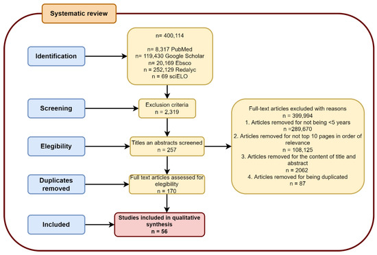 A systematic electronic search was conducted in accordance with the Preferred Reporting Items for Systematic Reviews and Meta-Analyses (PRISMA) [12] guidelines in the databases of PubMed, Google Scholar, Ebsco, Redalyc, and Scielo, with a focus on clinical studies, review articles, book chapters, and case reports. that search provided information about simple vascular malformations in the nervous system, in accordance with the 2018 guidelines of the International Society for the Study of Vascular Anomalies (ISSVA) [6]. All databases were last consulted in June 2022. Database-specific filters were used, as necessary, to complete the searches in all the specified databases. the search strategies and keywords are illustrated in Figure 2.