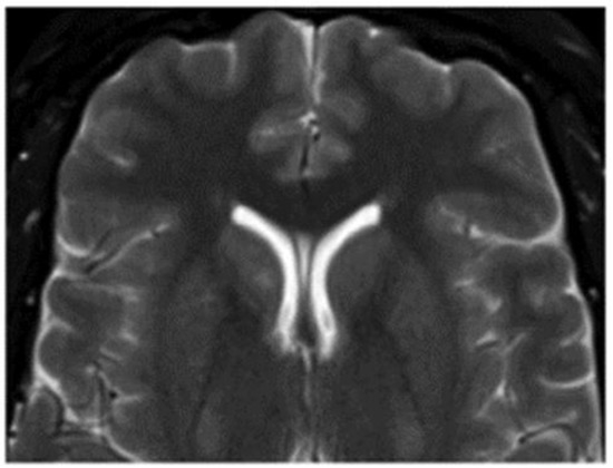 CCT measuring 6 mm in right caudate nucleus, observed through T2 MRI [59].
