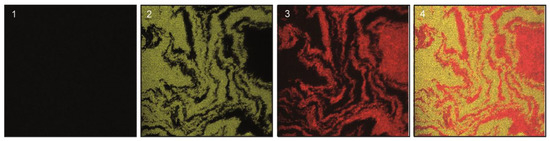 CLSM of agar surface mating performed at 37 °C. The epifluorescence channels CFP*, corresponding to the transconjugants (1); YFP*, corresponding to the recipient cells (2) and Dsred2.T3, corresponding to the donor cells (3), are shown. The representative mating areas are also displayed as overlay images (4). Images were taken of a representative area of an agar surface inoculated with E. coli SAR20 recipient and SAR08/pAR179Km donor cells carrying the drR27 plasmids, after 18 h of incubation at 37 °C.