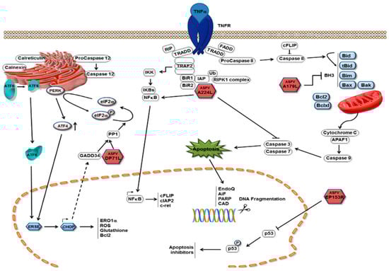 - Galindo, I.; Hernáez, B.; Muñoz-Moreno, R.; Cuesta-Geijo, M.A.; Dalmau-Mena, I.; Alonso, C. The Atf6 Branch of Unfolded Protein Response and Apoptosis Are Activated to Promote African Swine Fever Virus Infection. Cell Death Dis. 2012, 3, e341. [Google Scholar] [CrossRef] [PubMed]