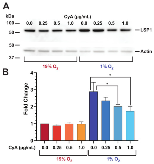 3.6. Human B Cell LSP1 Protein Amounts Are Increased at Low O Levels and Attenuated by CyA Treatment