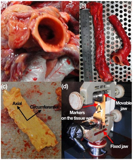 - Peterson, S.; Sundt, T.; Kouchoukos, N.; Yin, F.; Okamoto, R. Biaxial Mechanical Properties of Dilated Human Ascending Aortic Tissue. In Proceedings of the First Joint BMES/EMBS Conference, 1999 IEEE Engineering in Medicine and Biology 21st Annual Conference and the 1999 Annual Fall Meeting of the Biomedical Engineering Society, Atlanta, GA, USA, 13–16 October 1999; IEEE: Piscataway, NJ, USA, 1999; Volume 1, p. 195. [Google Scholar]