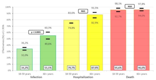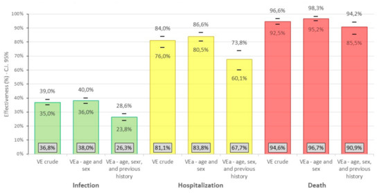 3.3. Vaccine Effectiveness in Deaths from SARS-Co-V-2